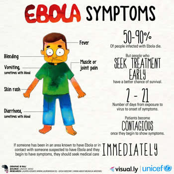 It is one of the outbreaks and the latest diseases in Africa. The symptoms are similar to the flu, cholera, typhoid and malaria. First symptoms are the sudden onset of fever fatigue, muscle pain, headache and sore throat. The fever is usually greater than 38.